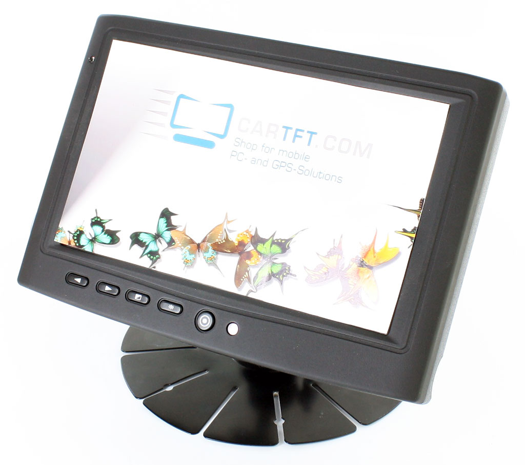 The device has integrated Stereo-speakers, a rear camera input and the dimmer button in the front will enable perfect viewing pleasure also during the night.